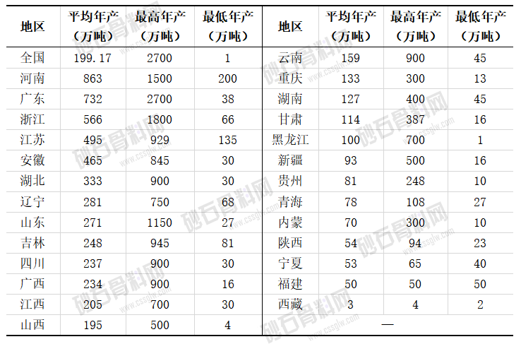 制表:砂石骨料网—砂石数据中心